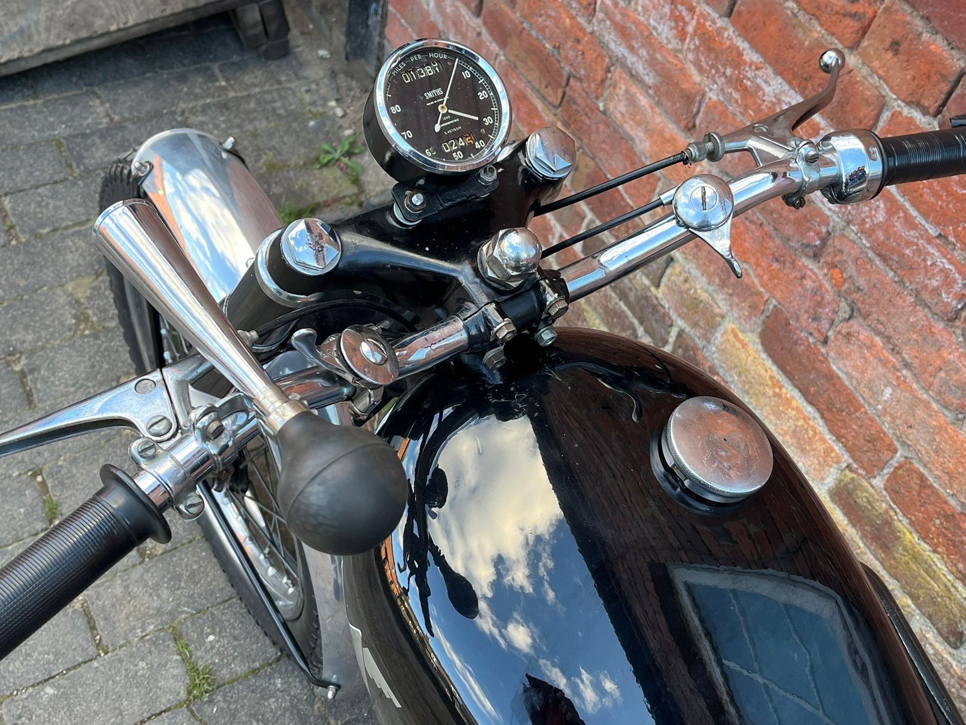 A really lovely bike to ride. Light, easy to start, sounds great, goes very well. Speedo working. Dynamo fitted but no harness or lights fitted. Good gears and clutch. Rear brake good, front brake poor.