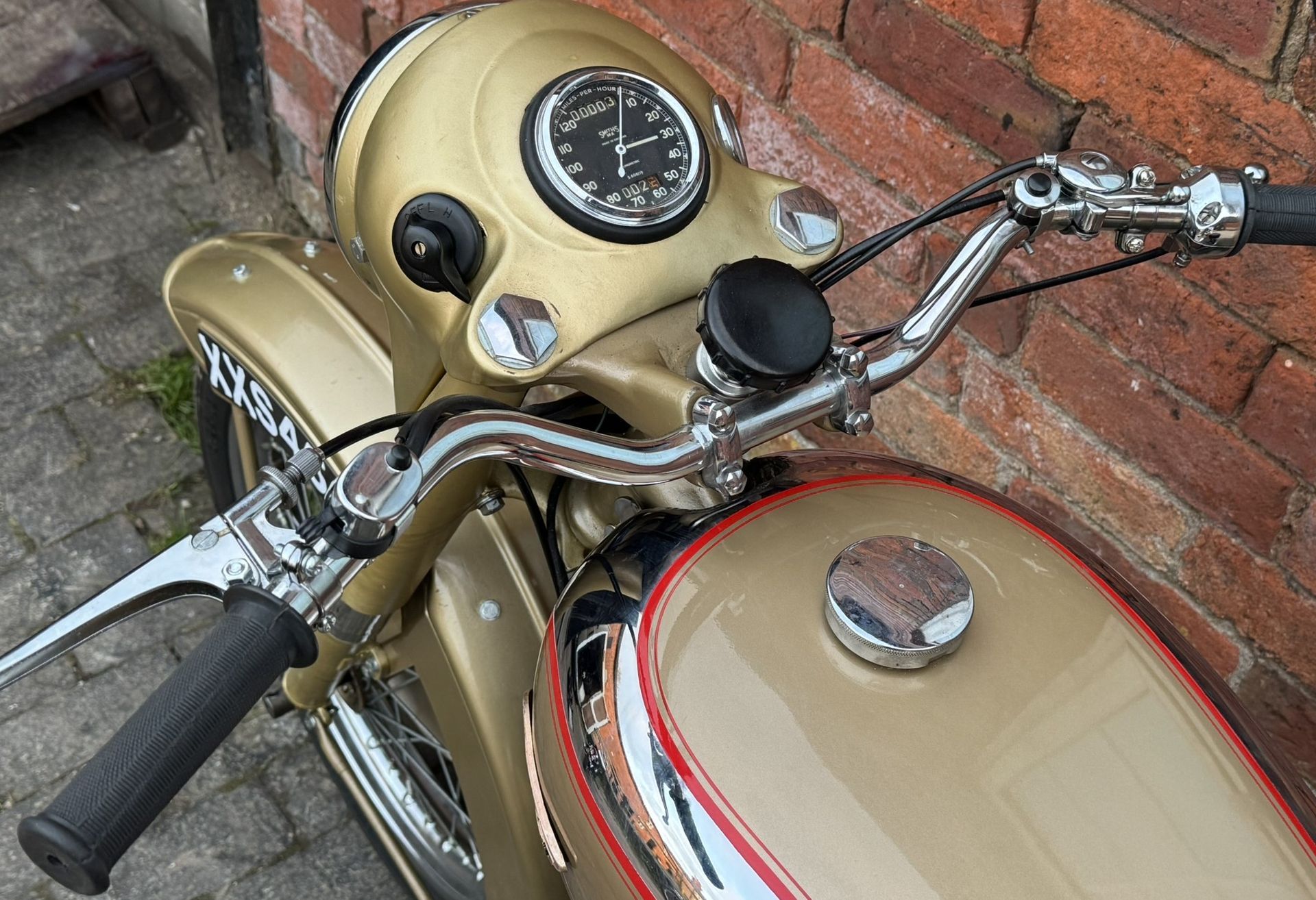 One of the period's most popular and successful models, the BSA A10 is still capable of giving good lively classic-motorcycling . This example starts and runs well , charging OK, speedo working , good brakes etc. Great to ride with bags of low down torque and good acceleration. Good gears and clutch.Comes with up to date V5C, Historic road tax and MOT exempt.