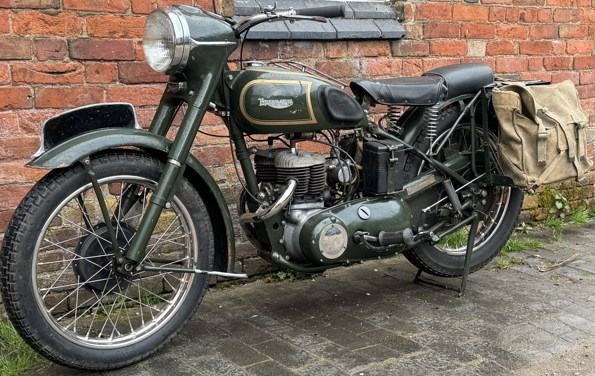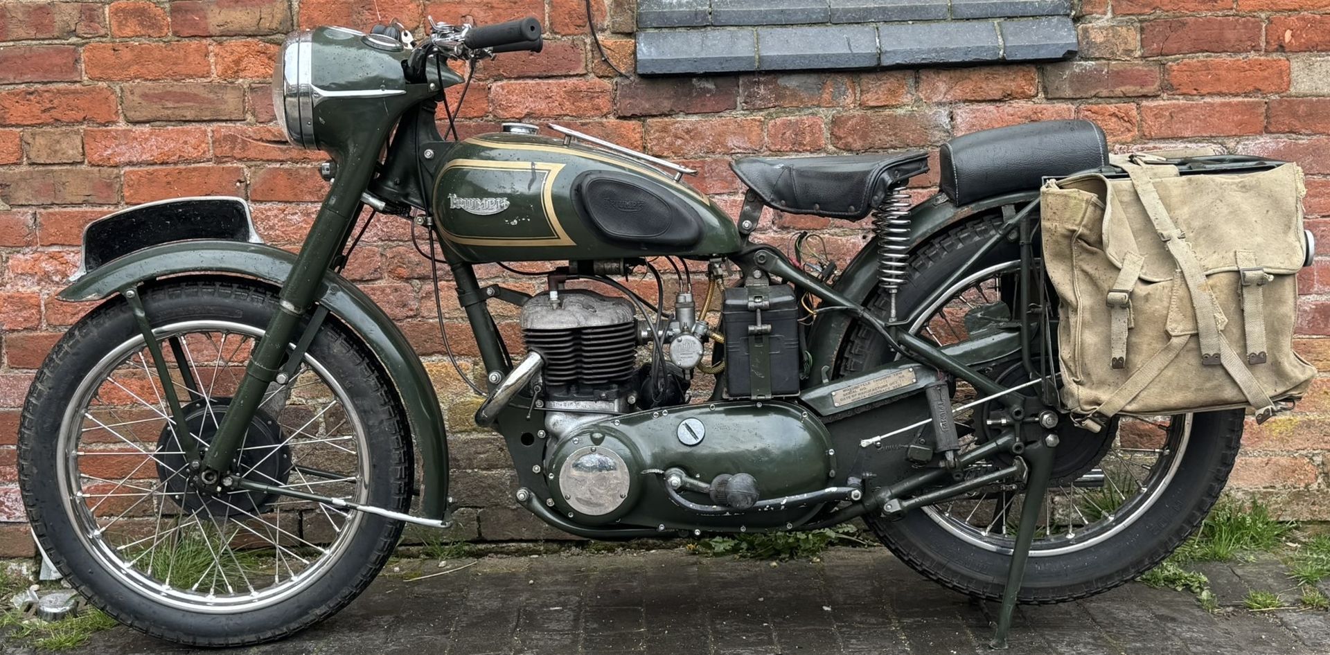 Lovely characterful old ex W.D. Triumph 500cc sidevalve. Ideal for errands, running messages and riding in convoys, also an ideal all days type classic machine. The perfect stress free bike to potter around the lanes on in style. Added benefit of keeping Stalin's Russia at bay.