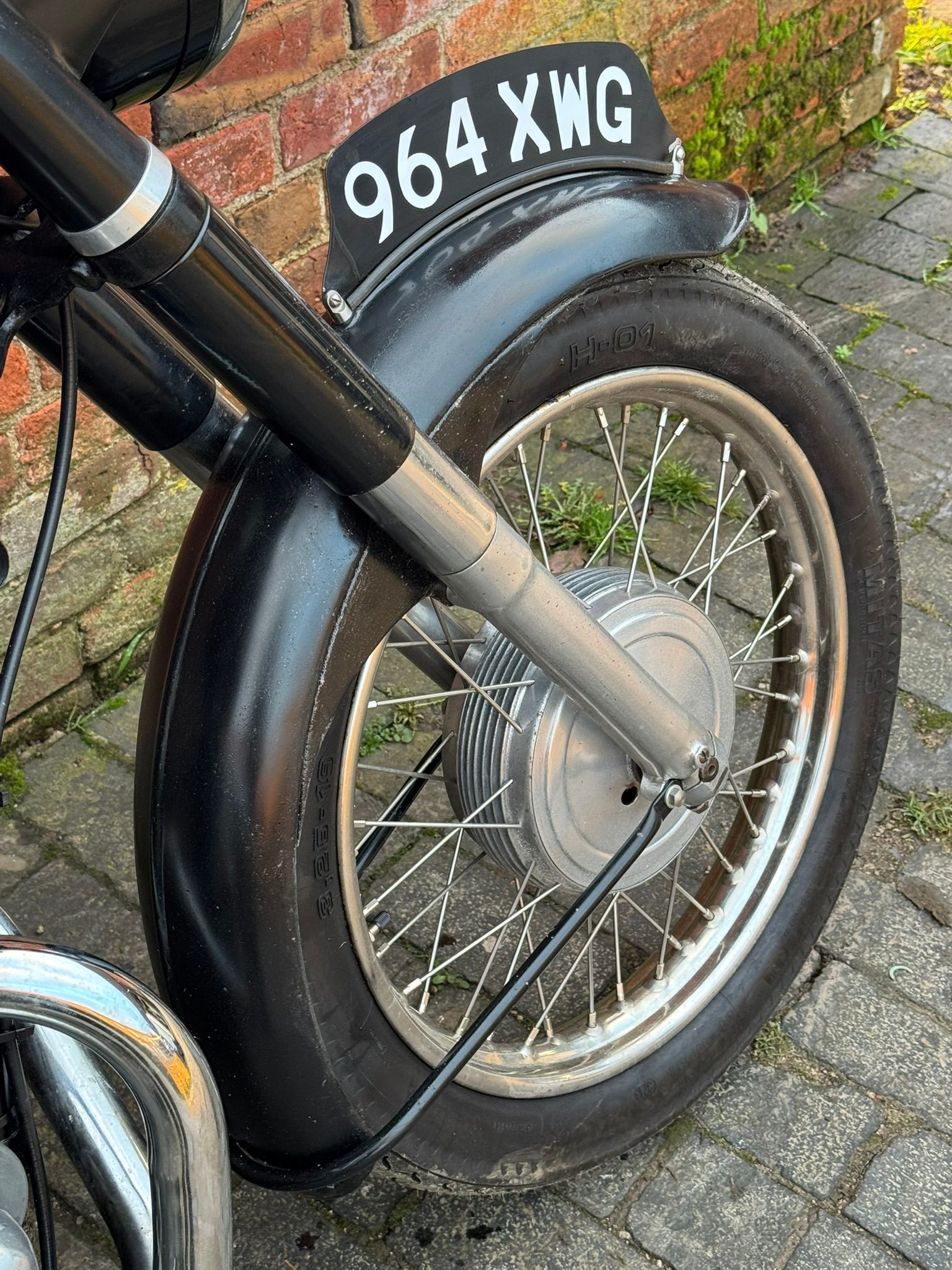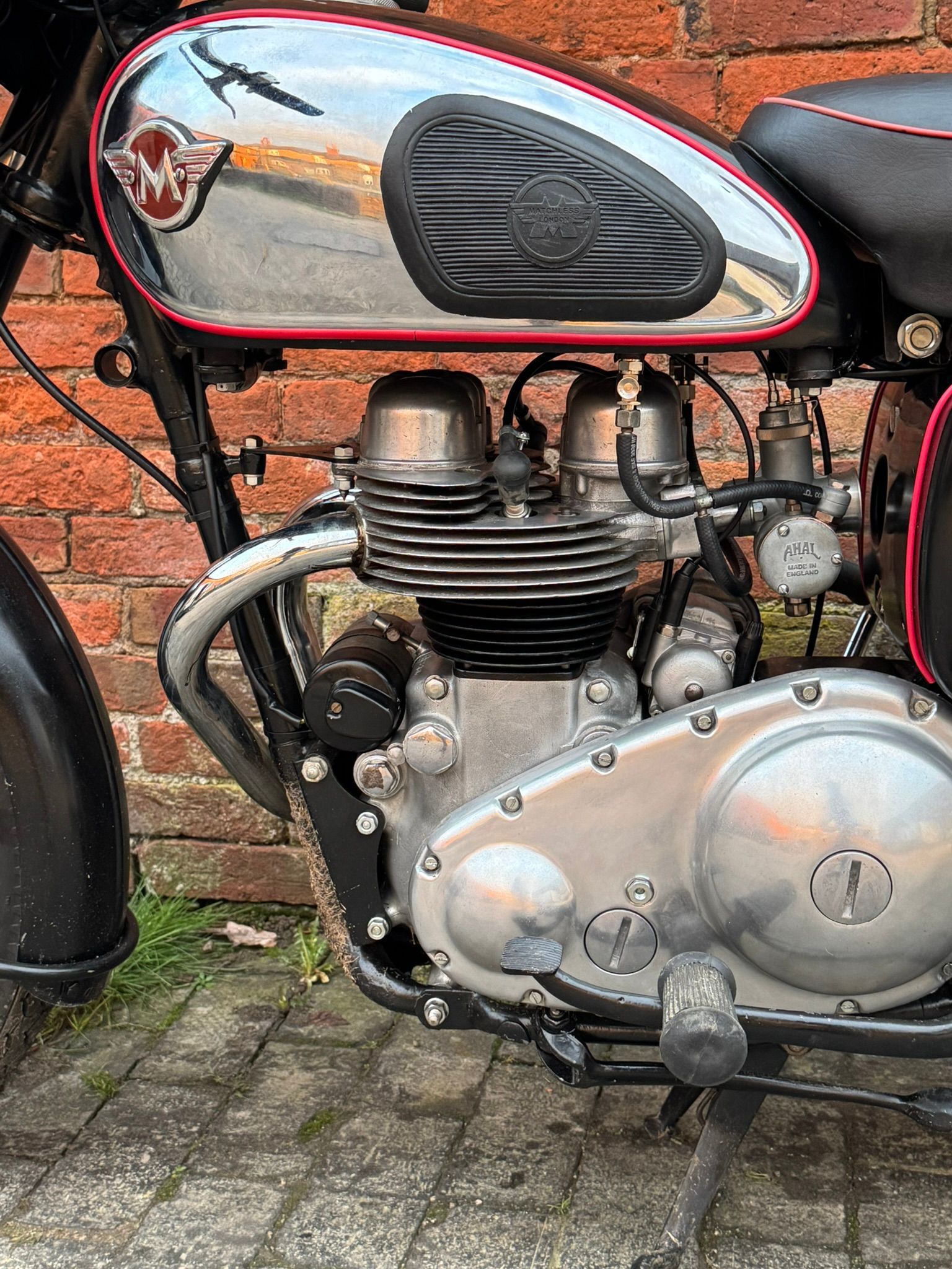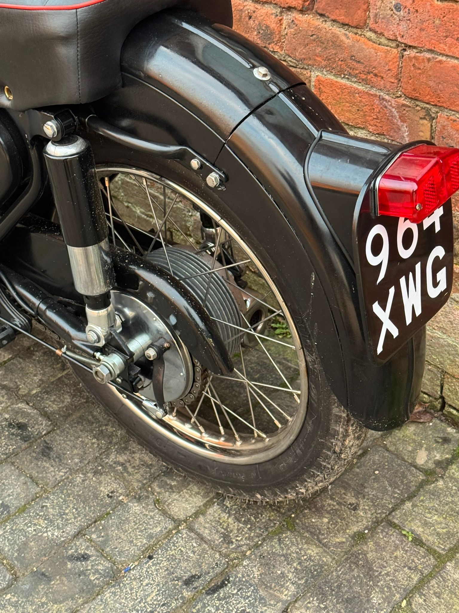 This Matchless came to me having been restored but never quite finished. There was very little to do, fuel lines, some wiring, chaincase screws etc. The bike started easily and sounds very good. It has a loud raspy exhaust note as if there is hardly and baffling in the silencer. Rides very well, good brakes, speedo working, electrics charging good lights. Gears and clutch good.