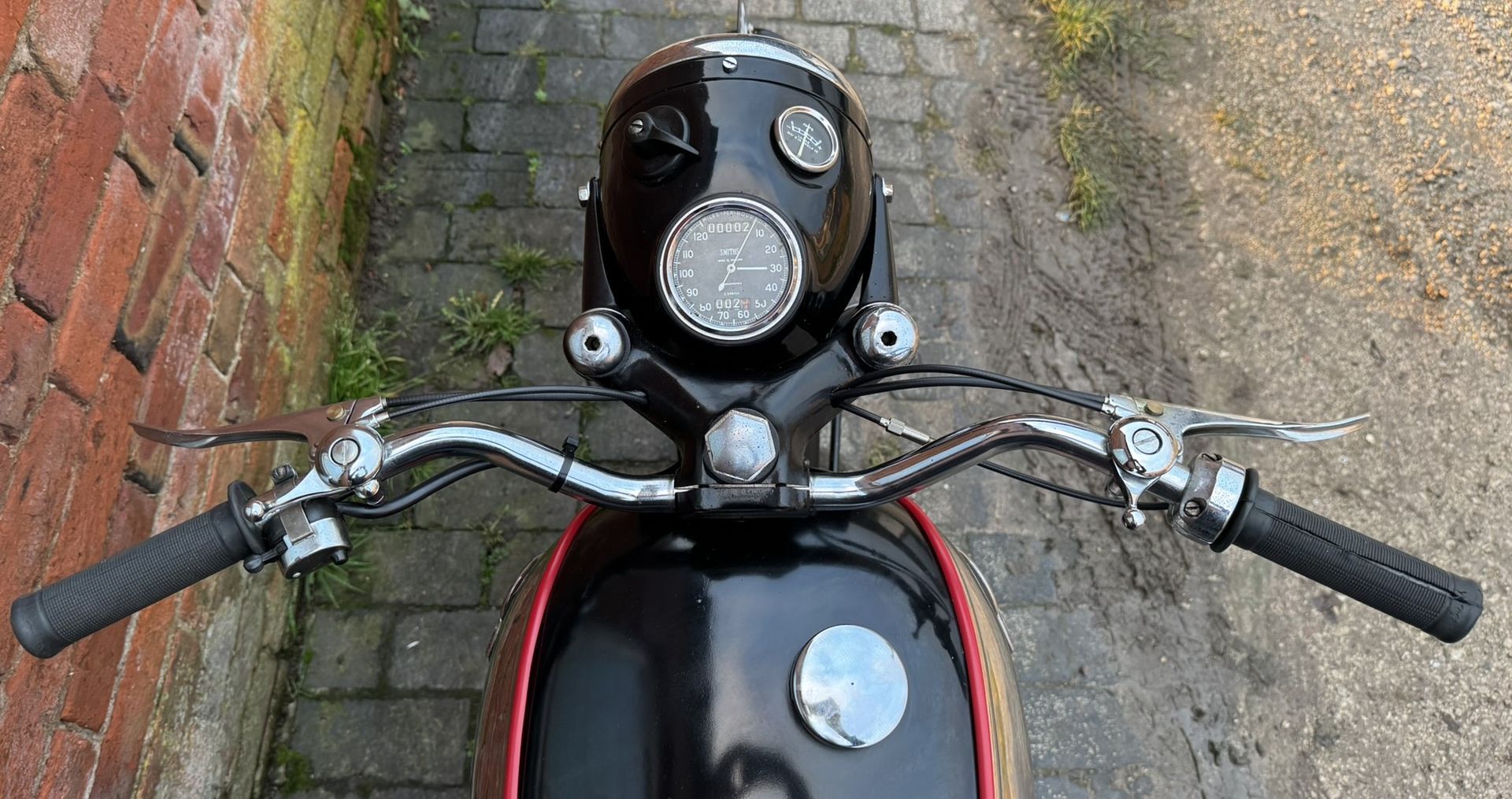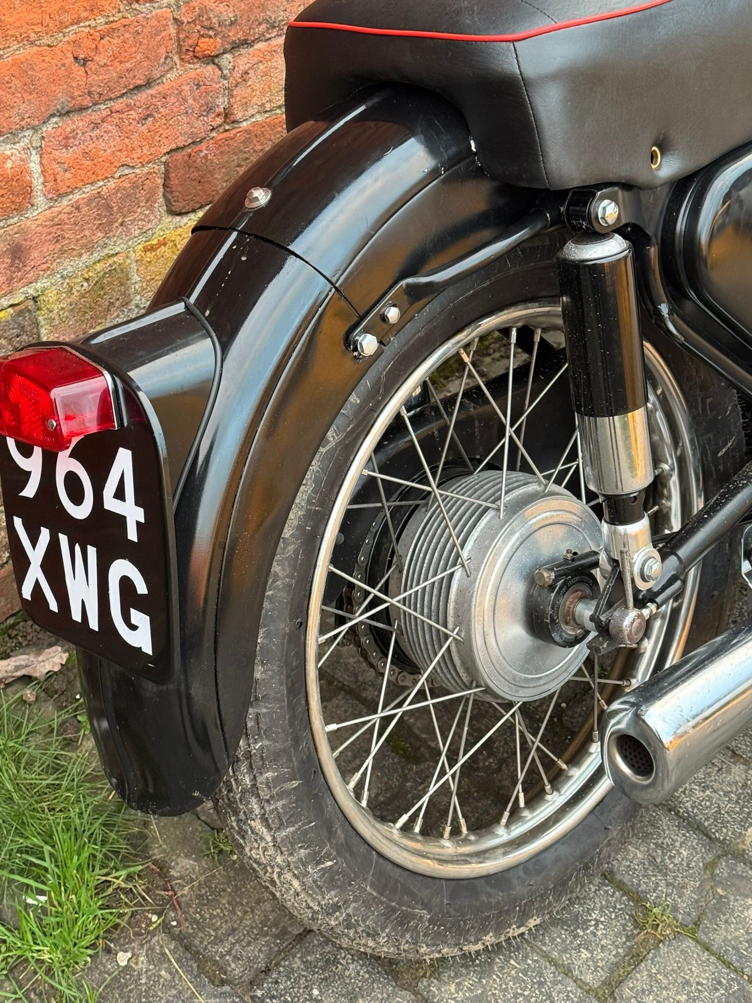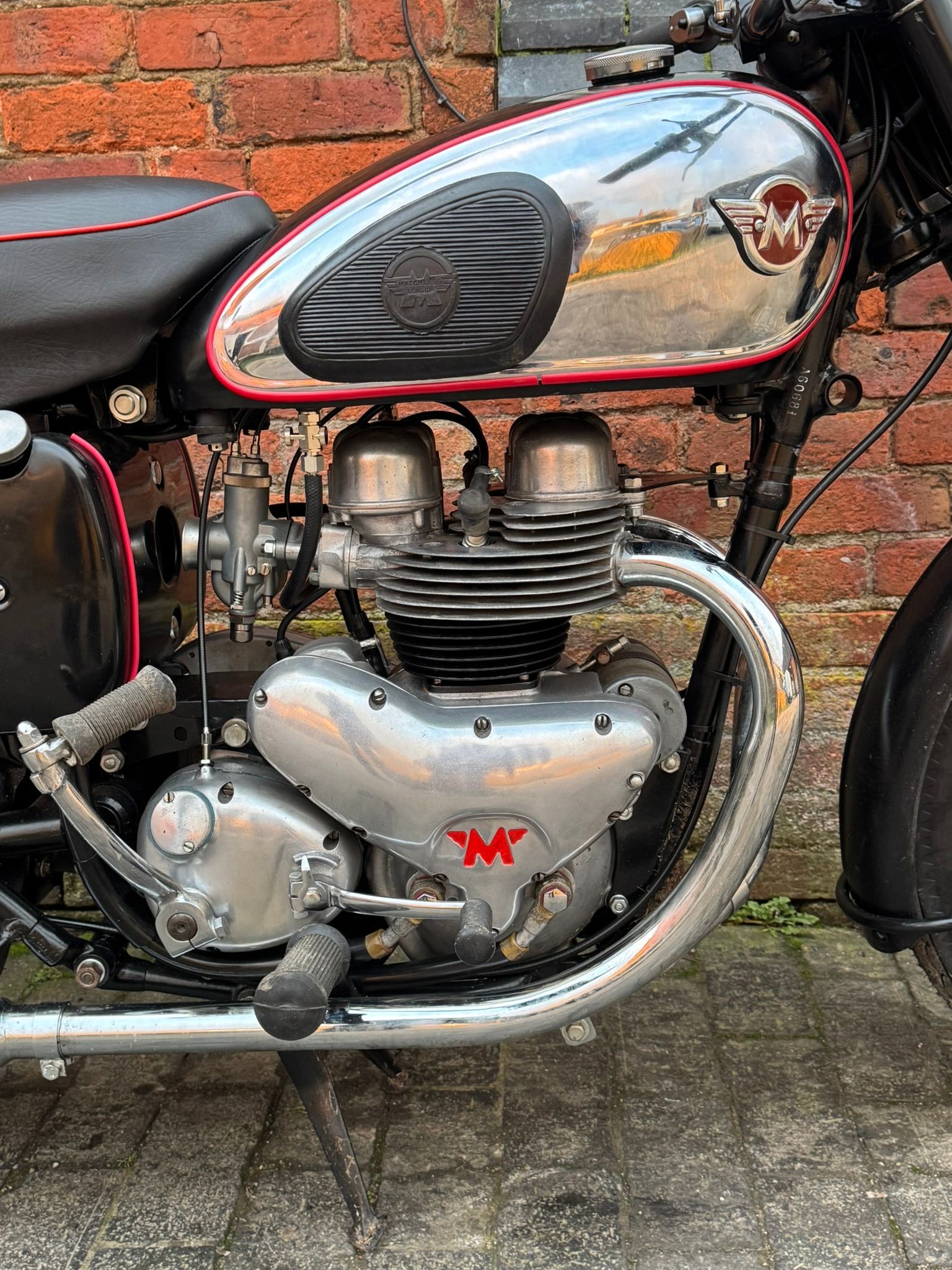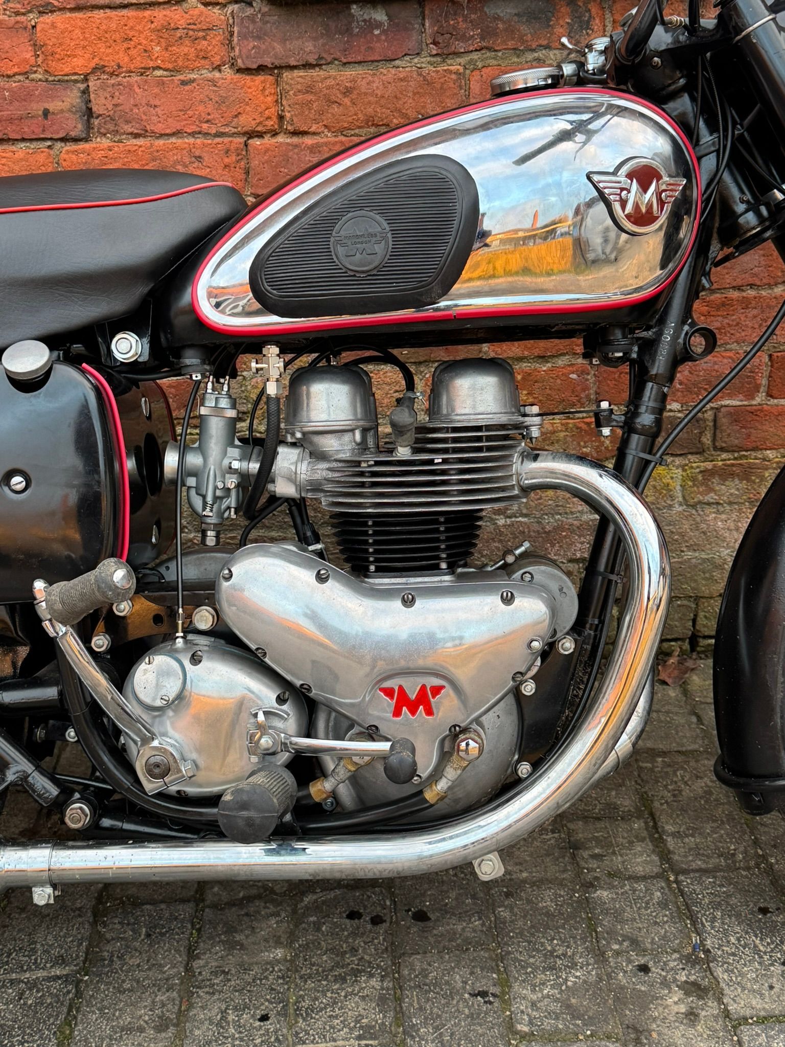 This Matchless came to me having been restored but never quite finished. There was very little to do, fuel lines, some wiring, chaincase screws etc. The bike started easily and sounds very good. It has a loud raspy exhaust note as if there is hardly and baffling in the silencer. Rides very well, good brakes, speedo working, electrics charging good lights. Gears and clutch good.