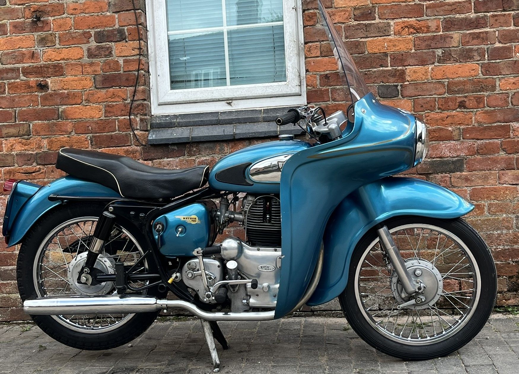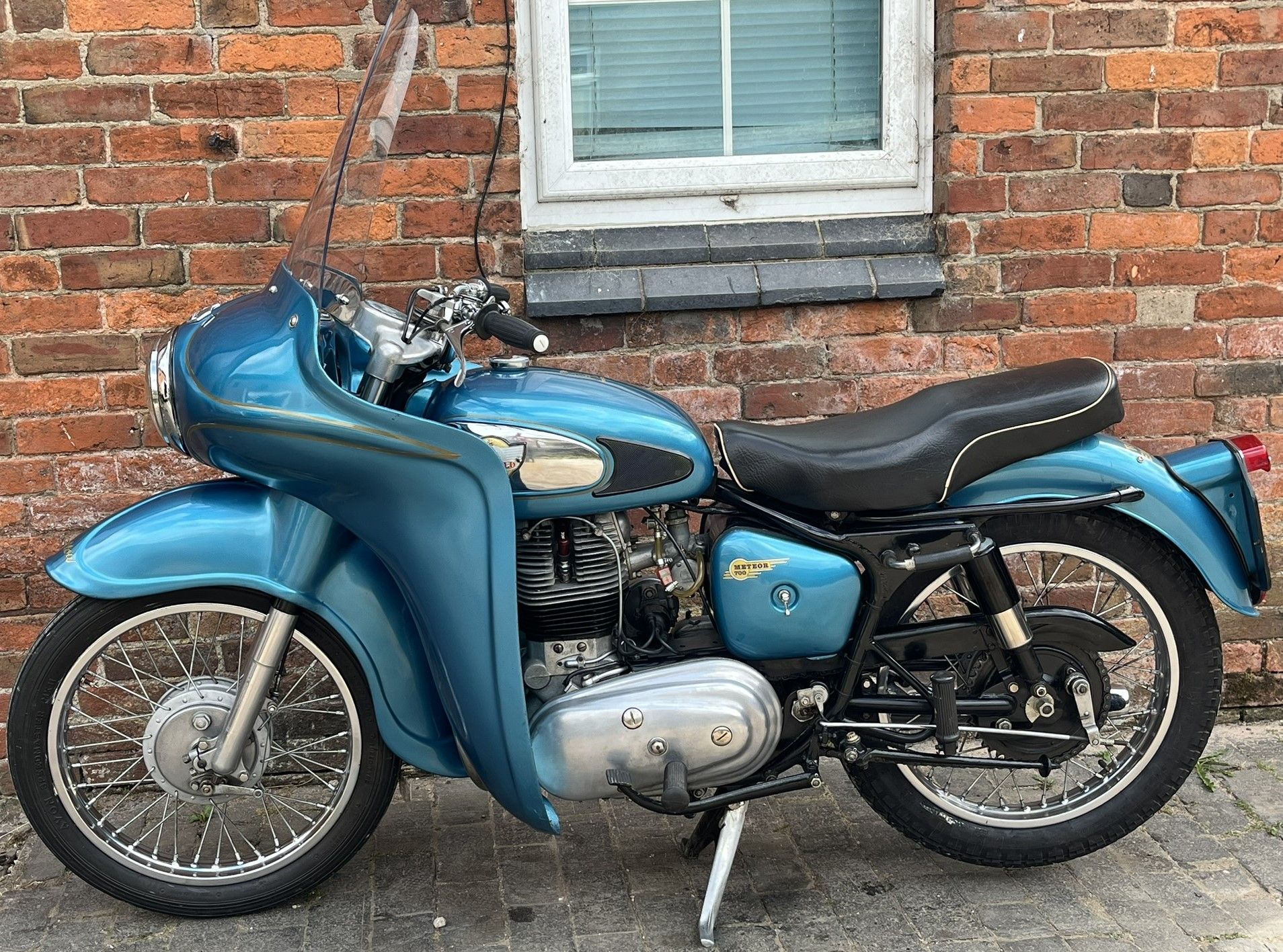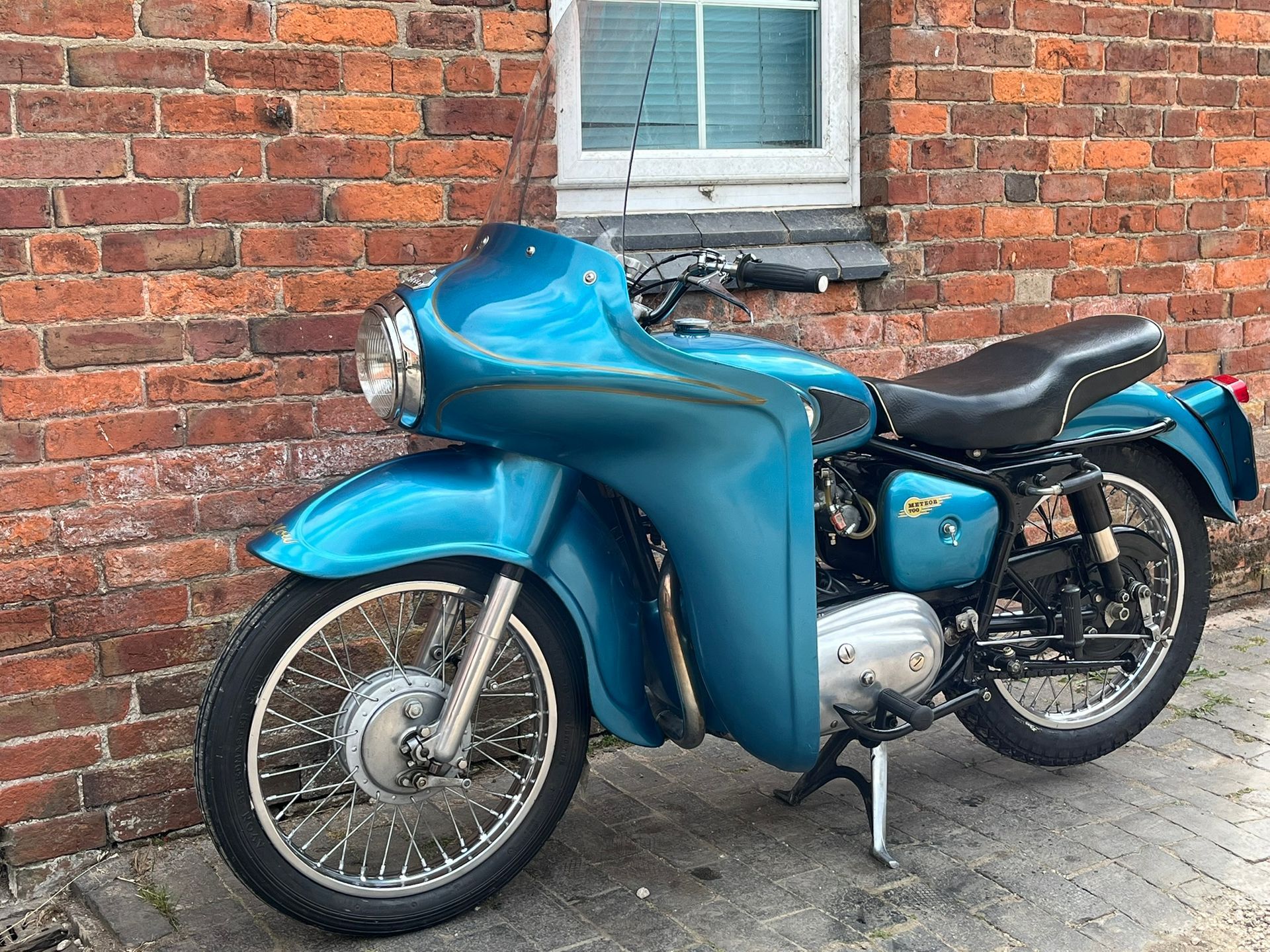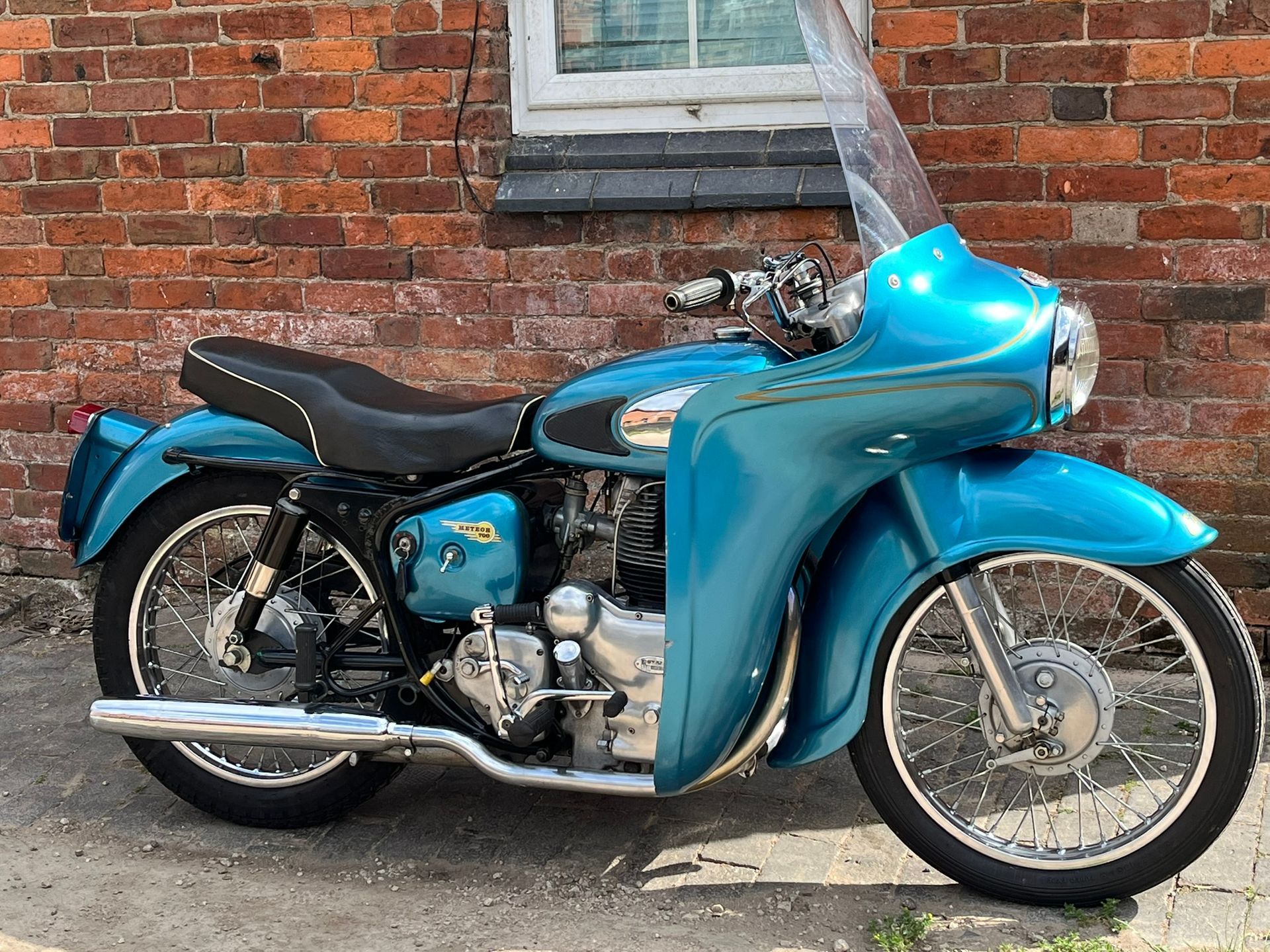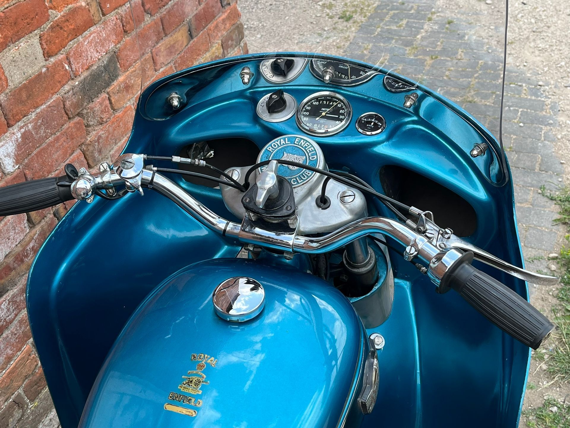 A real chance to own a genuinely eye catching example of 1960's British motorcycling style! This Super Meateor is in fine fettle and has Enfield's Airflow fairing giving that really uniquely 60's look to the bike. It is practical as well giving terrific protection against the wind. I haven't tried it in cold or rainy weather but I expect it would make touring in those conditions much more bearable.