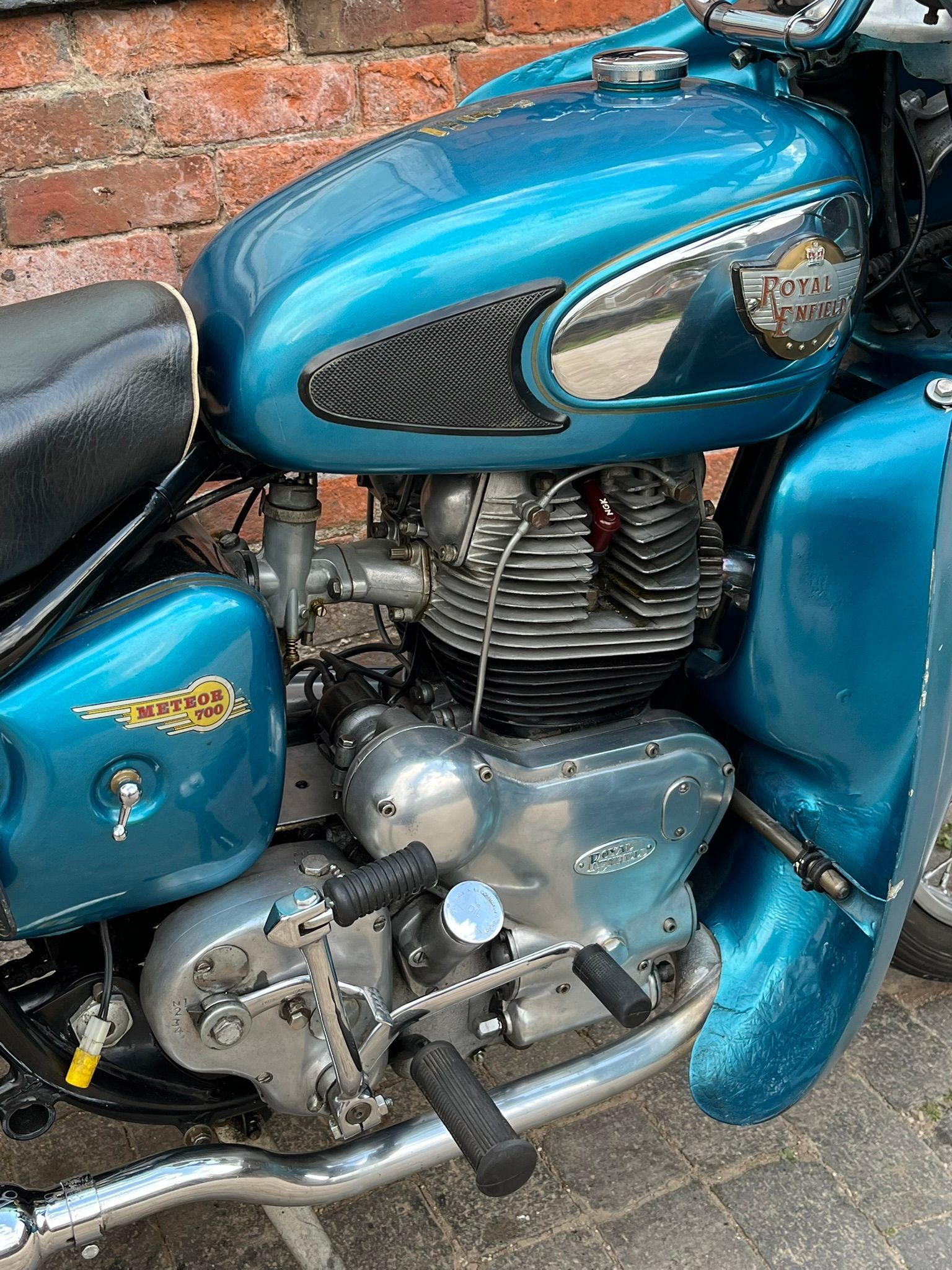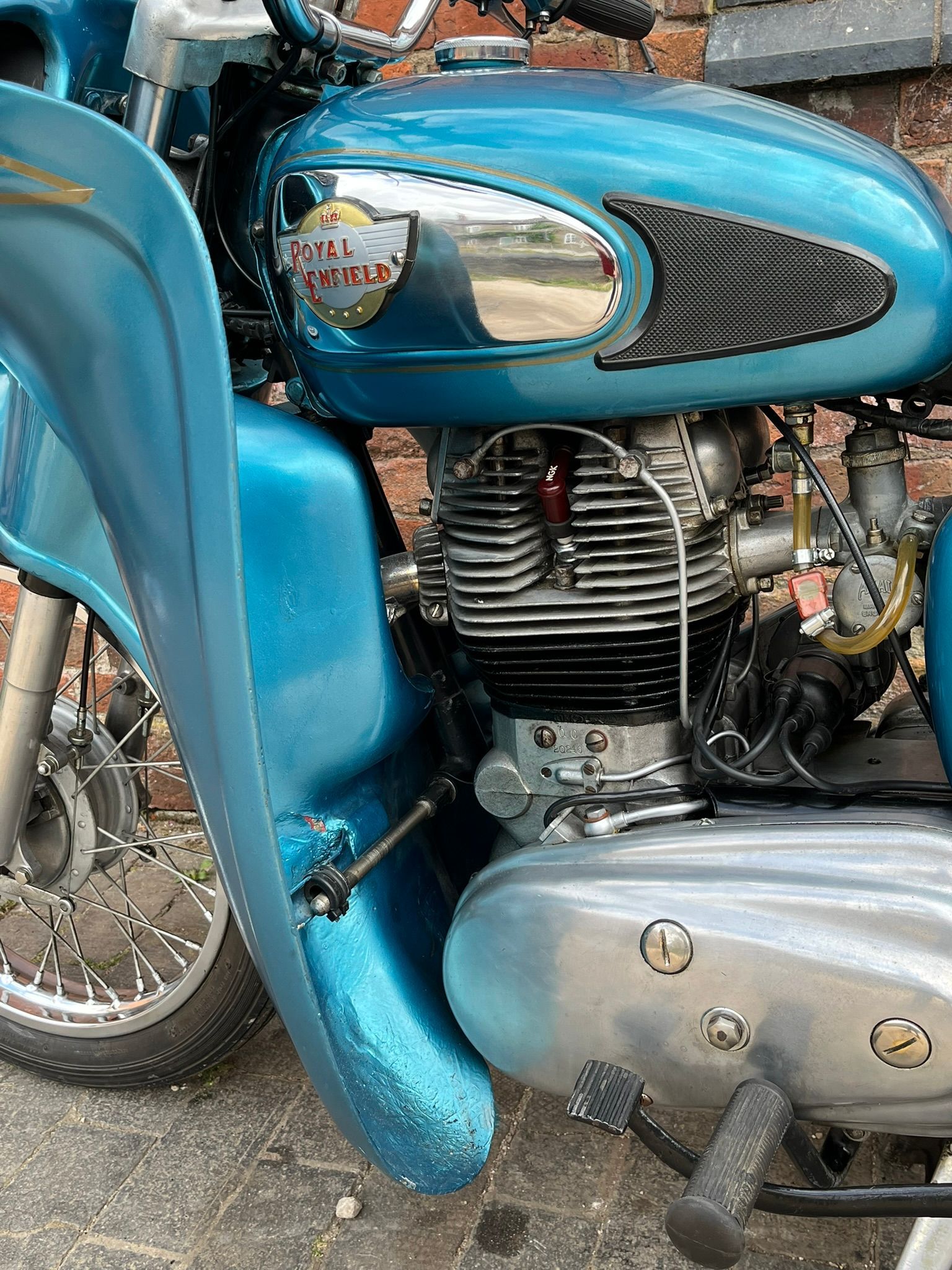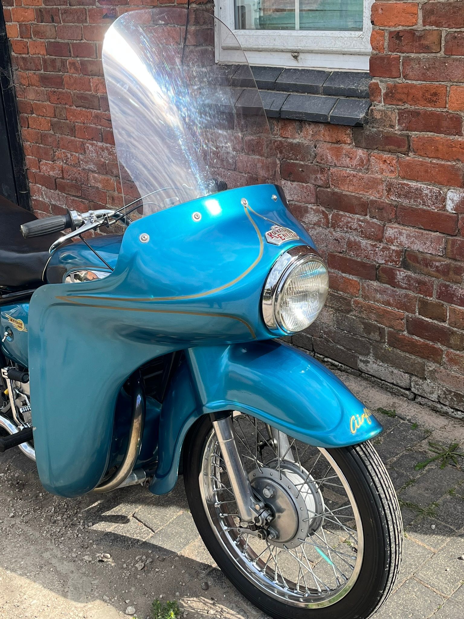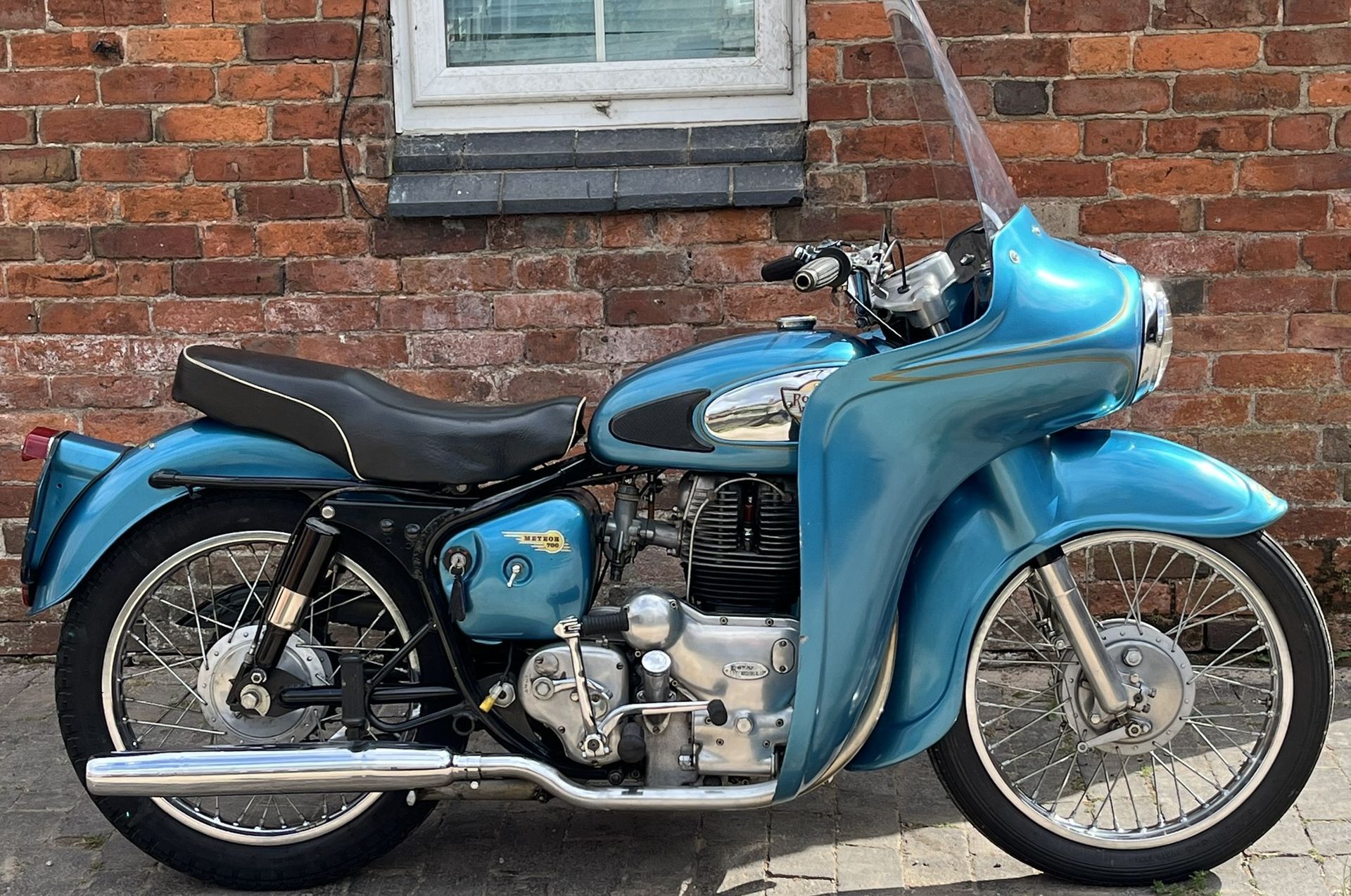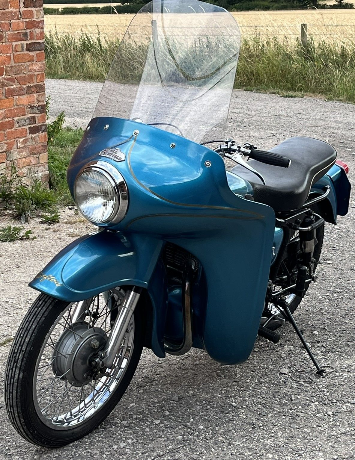 A real chance to own a genuinely eye catching example of 1960's British motorcycling style! This Super Meateor is in fine fettle and has Enfield's Airflow fairing giving that really uniquely 60's look to the bike. It is practical as well giving terrific protection against the wind. I haven't tried it in cold or rainy weather but I expect it would make touring in those conditions much more bearable.