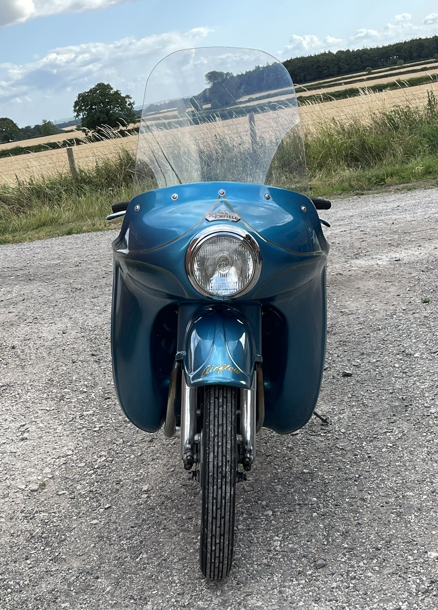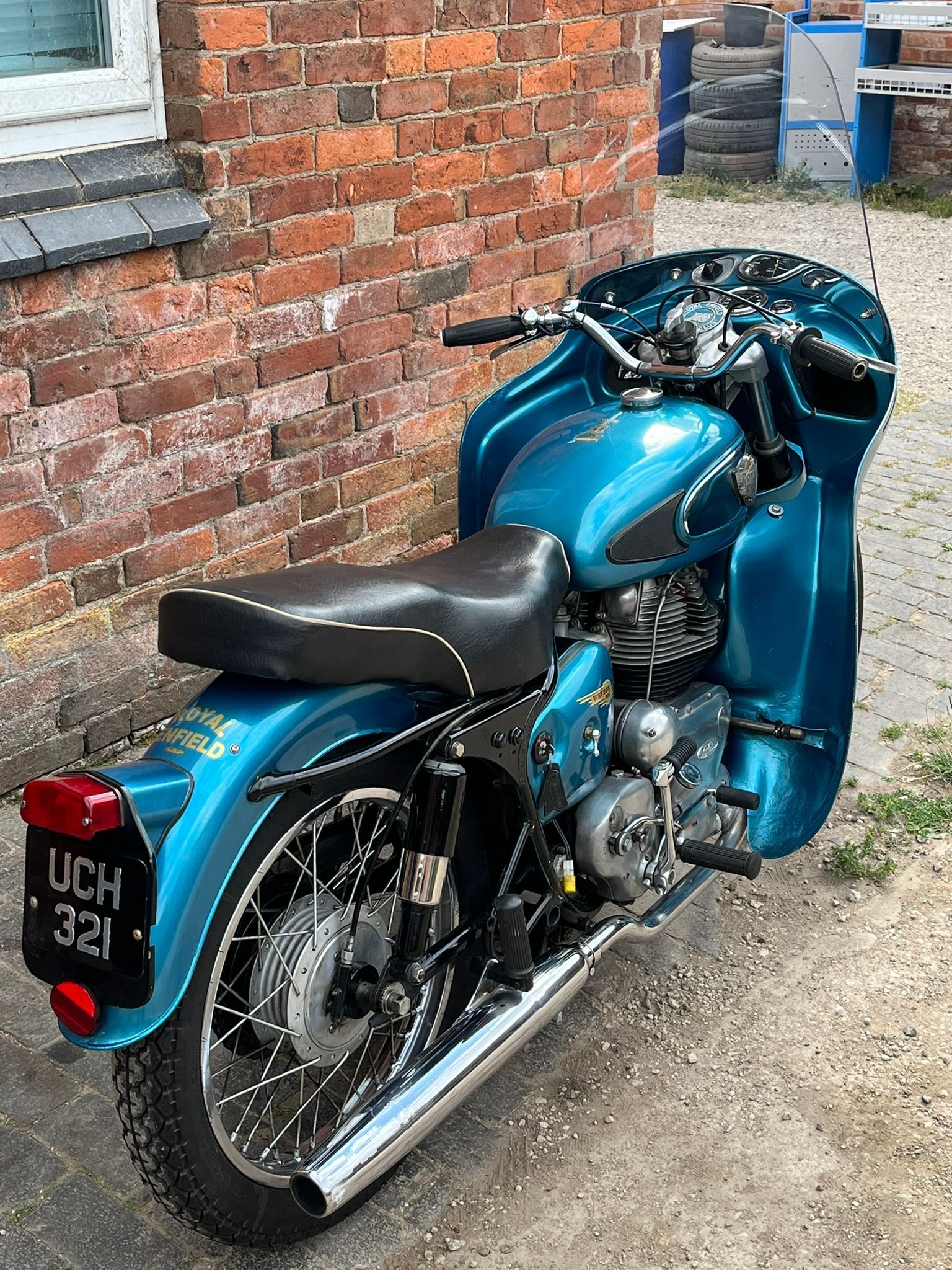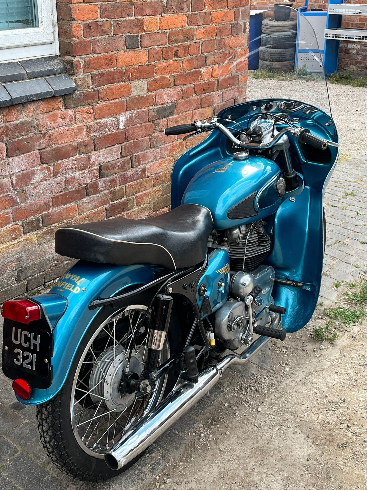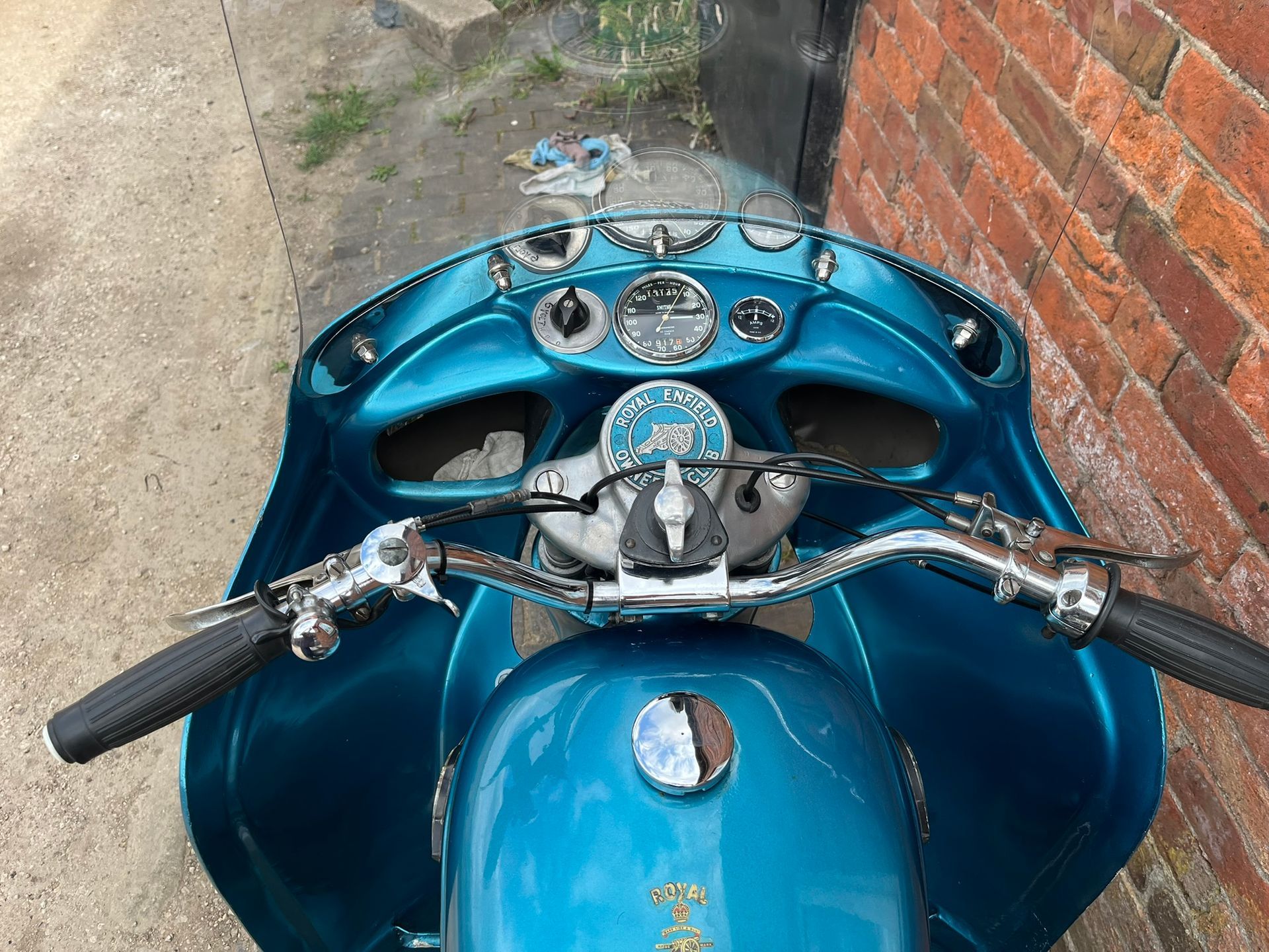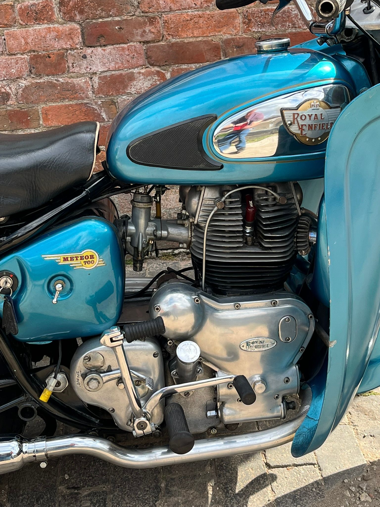 A real chance to own a genuinely eye catching example of 1960's British motorcycling style! This Super Meateor is in fine fettle and has Enfield's Airflow fairing giving that really uniquely 60's look to the bike. It is practical as well giving terrific protection against the wind. I haven't tried it in cold or rainy weather but I expect it would make touring in those conditions much more bearable.