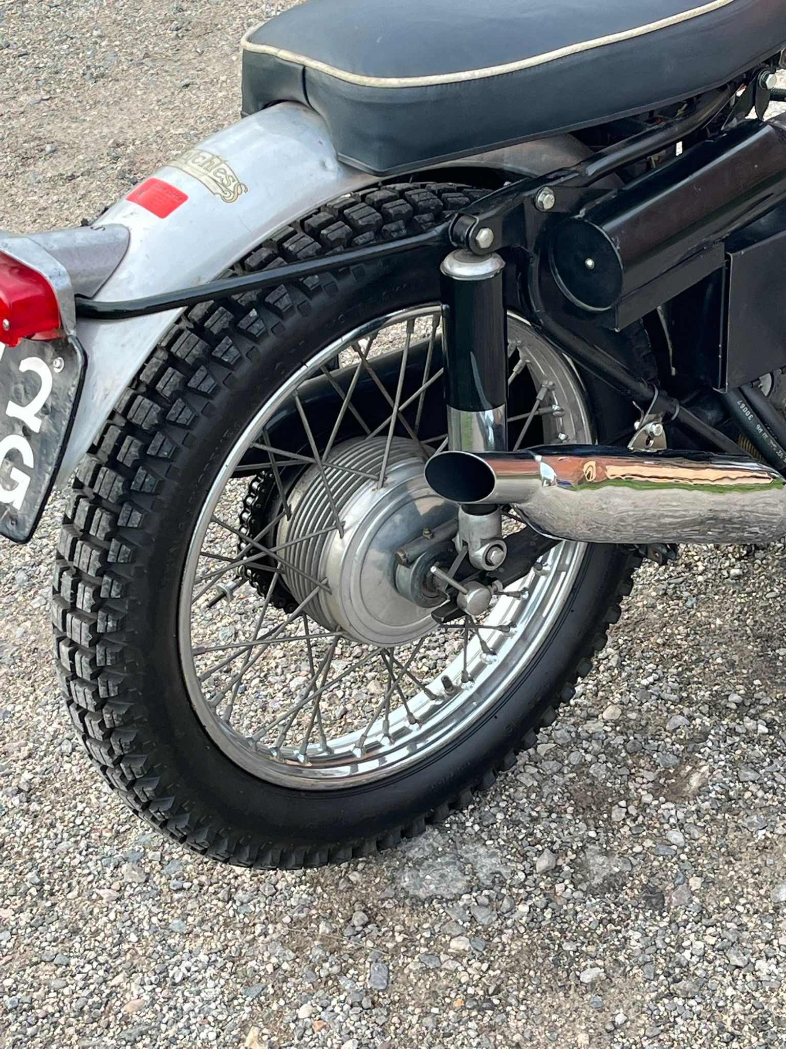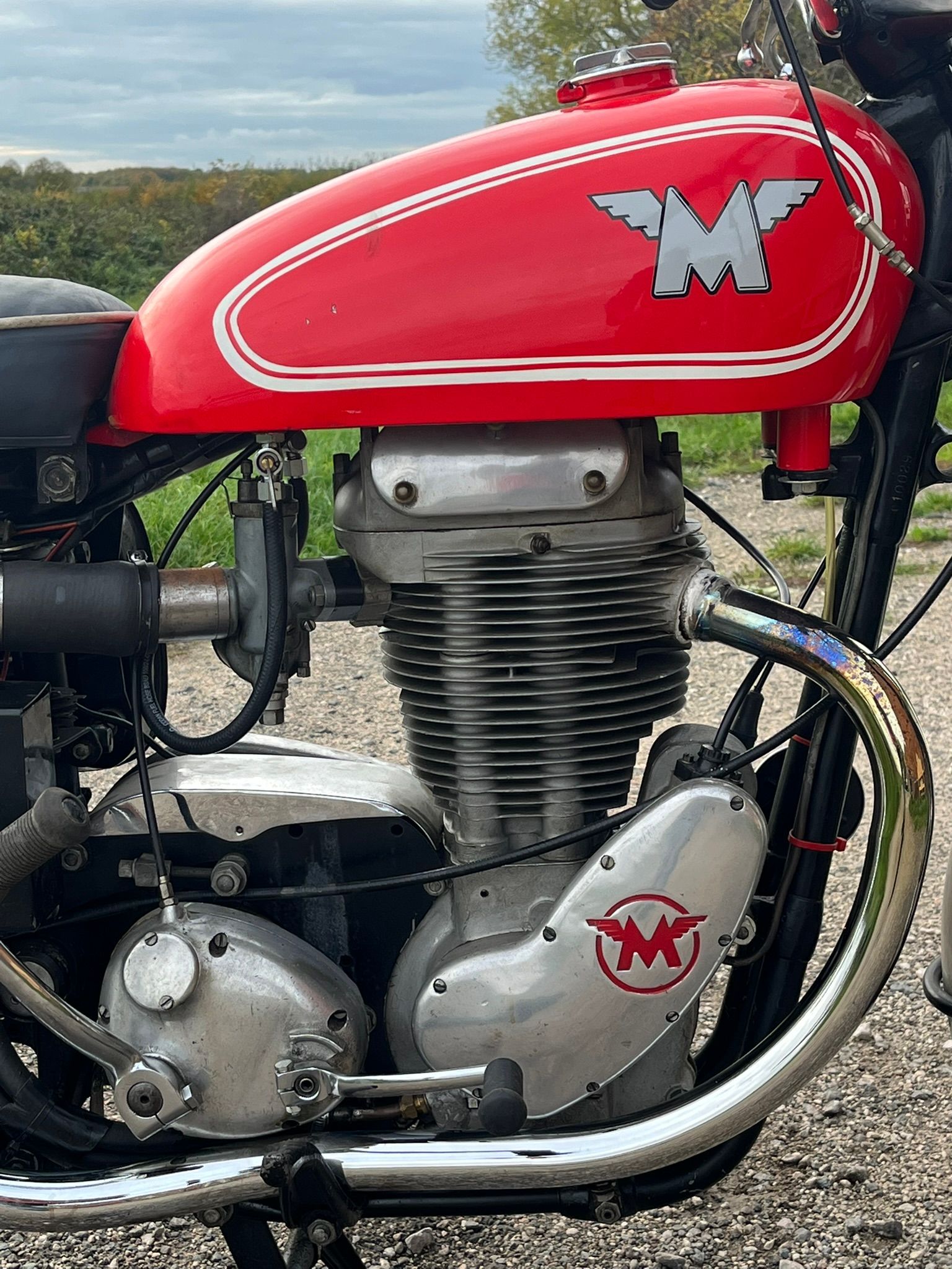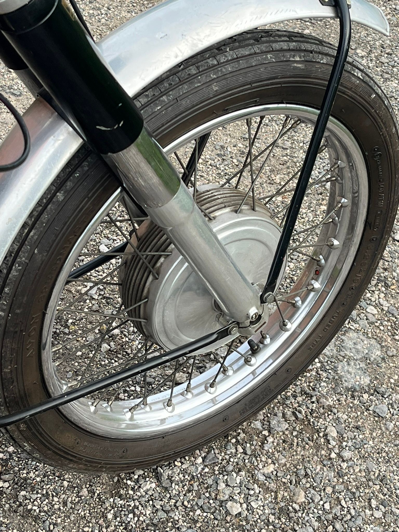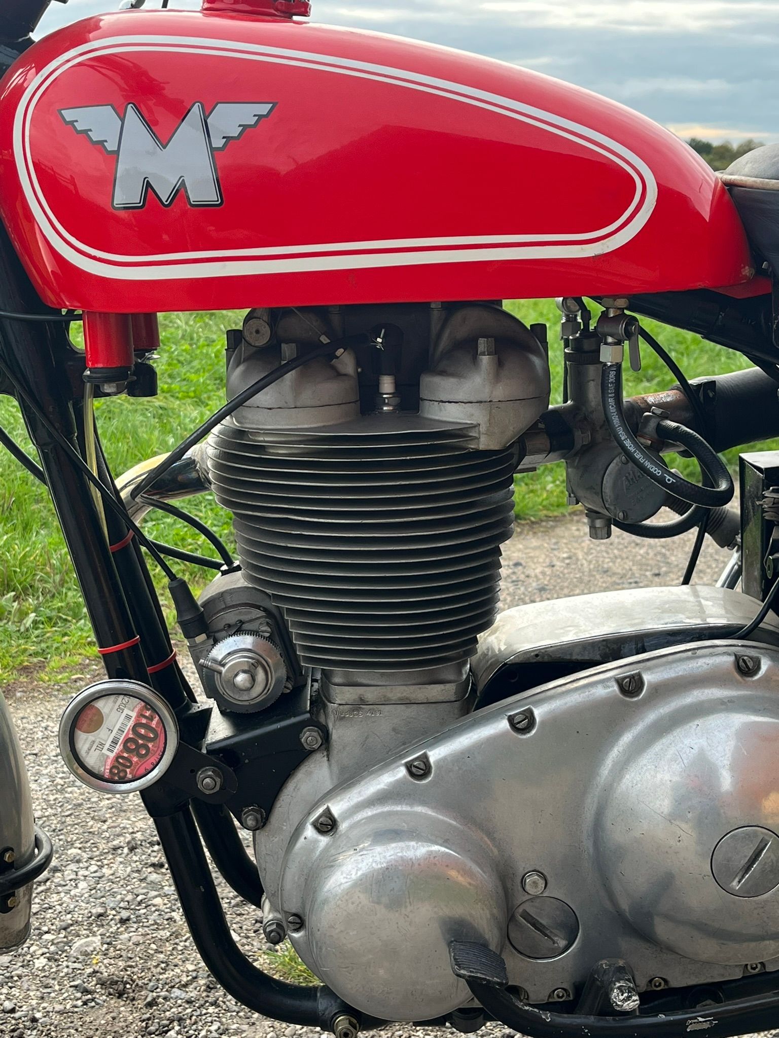 Fab example of my favourite post-war classic -The Matchless G80CS. Equally at home doing a genuine 70mph along the dual-carriageway as riding across a muddy field. These very lively bikes that were designed as competition scramblers make fantastic, fun all rounders. Starts well sounds great. Kick-starting is quite easy, (much easier than a Goldie!). Good electrics 12v.