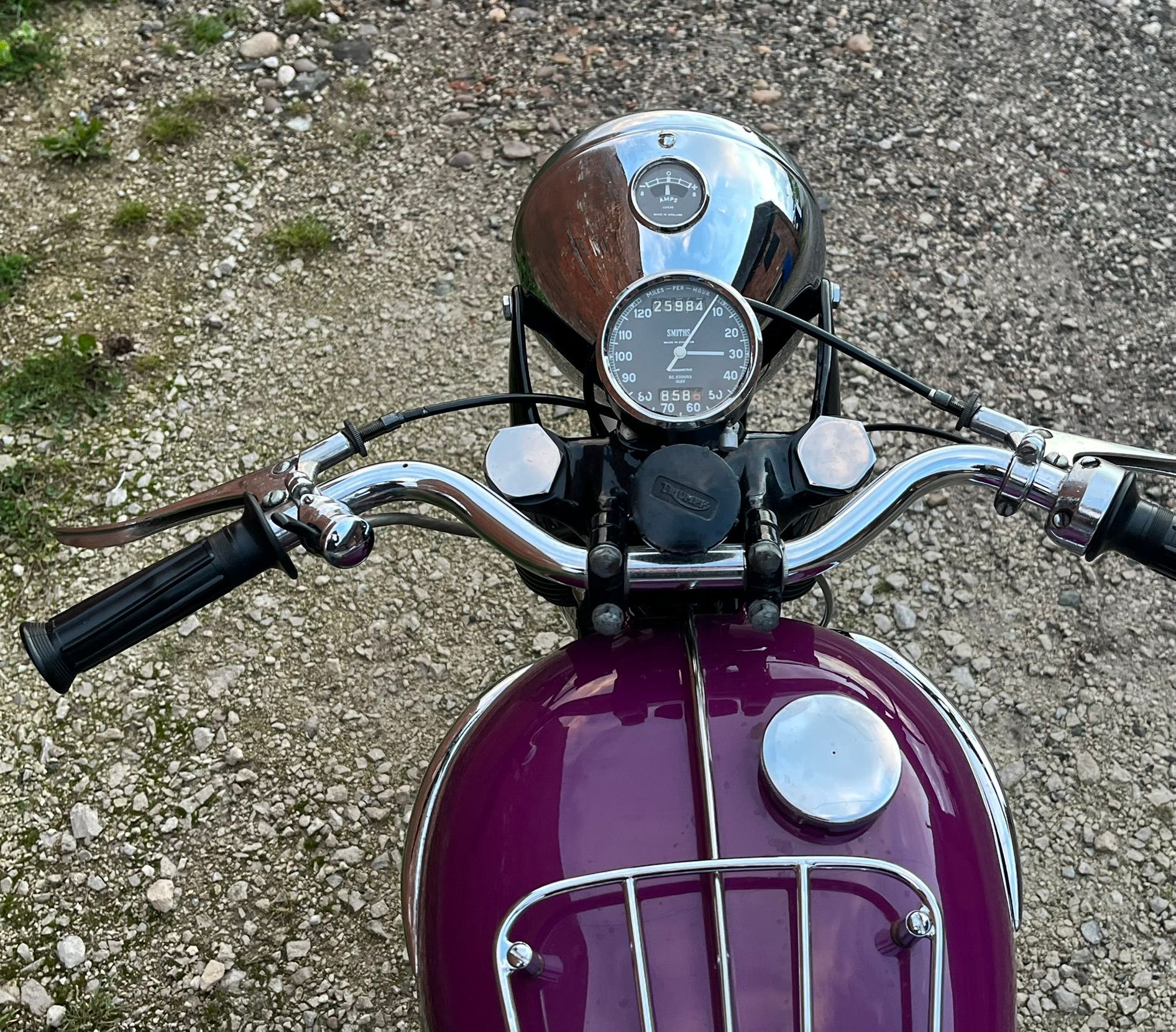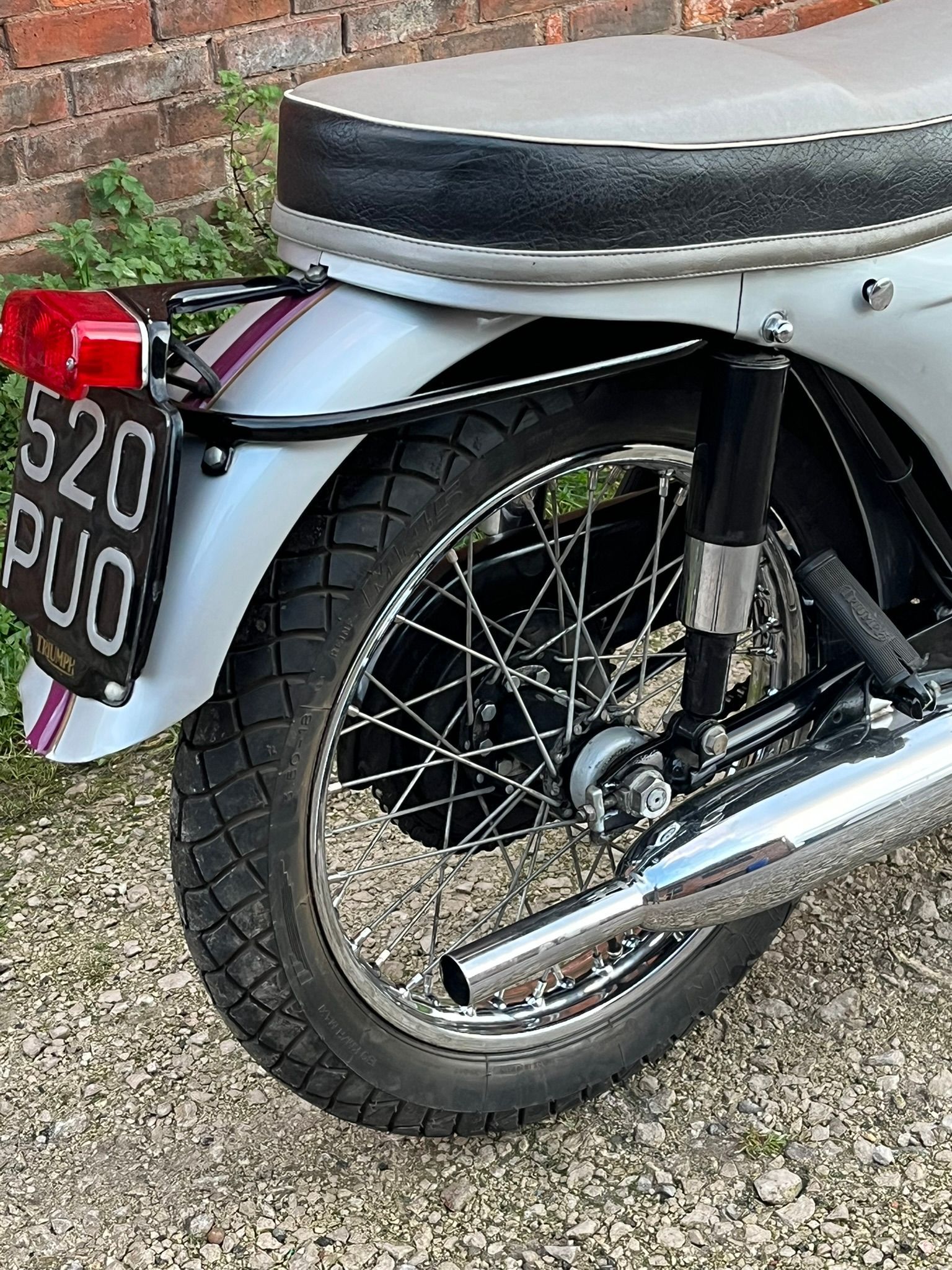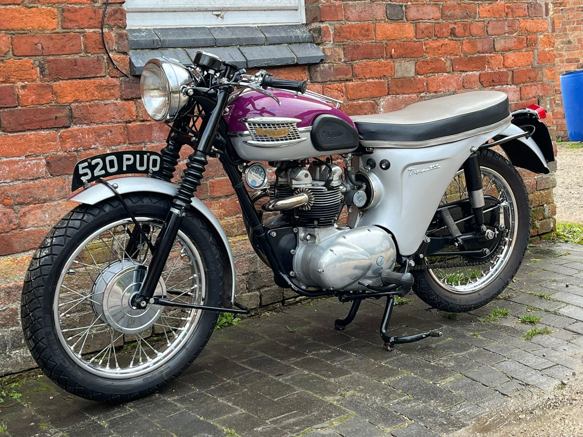Here is a beautiful example of the Triumph T100SS. Very nicely restored, runs and rides beautifully too. Charging system working well, good lights, good gears and clutch and good brakes. A lovely smaller sized 500cc sporting little Triumph. V5C , original reg, buff log book.